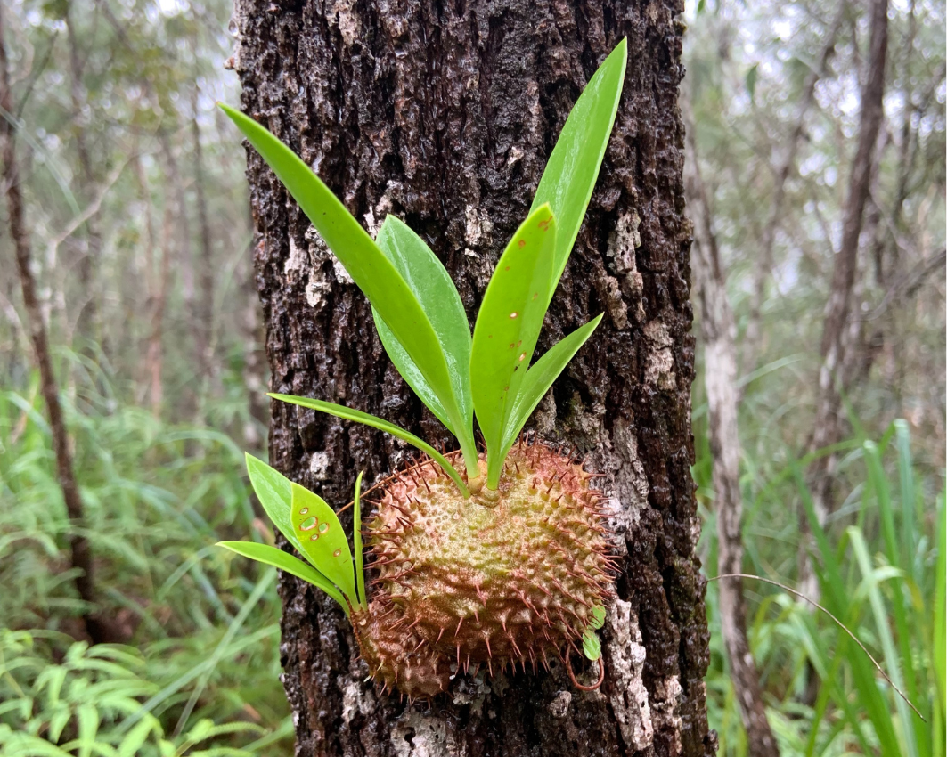 Conservation efforts are crucial to protect this unique plant and its symbiotic relationships with the golden ant (Philidris cordatus) and the Apollo Jewel butterfly (Hypochrysops apollo apollo).