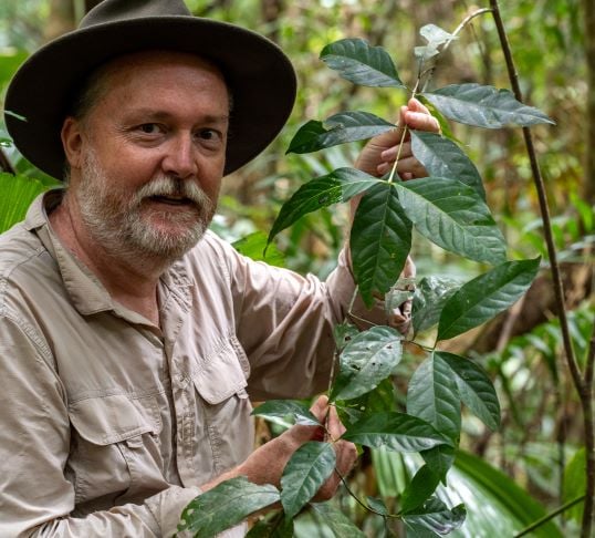 Our founder, Kelvin, with the Daintree gardenia (Randia audasii)