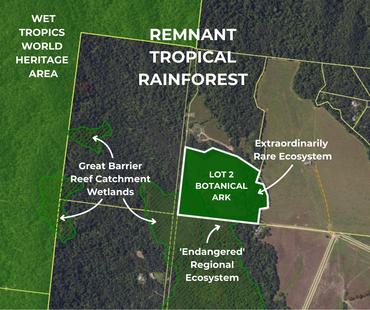 Lot 2 sits adjacent to the Wet Tropics World Heritage Area, providing an essential connection between rainforest and reef. By purchasing and restoring this property, we will: